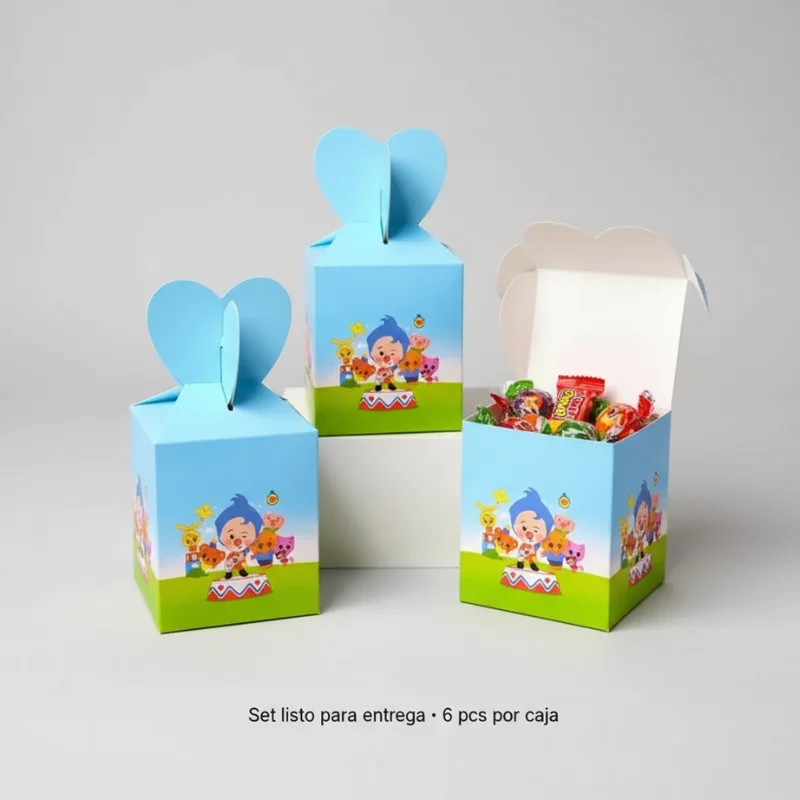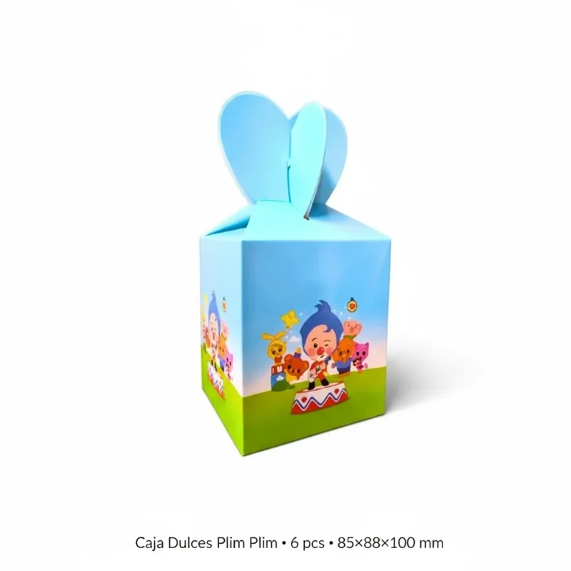 La Caja de Dulces Plim Plim es un atractivo envase de cartón de dimensiones 85x85x100 mm, decorado con un encantador personaje de dibujos animados. Este producto incluye un total de 6 piezas, ideal para almacenar y presentar dulces de manera divertida y colorida, perfecta para fiestas y celebraciones infantiles. Su diseño llamativo y alegre seguramente capturará la atención de los más pequeños.