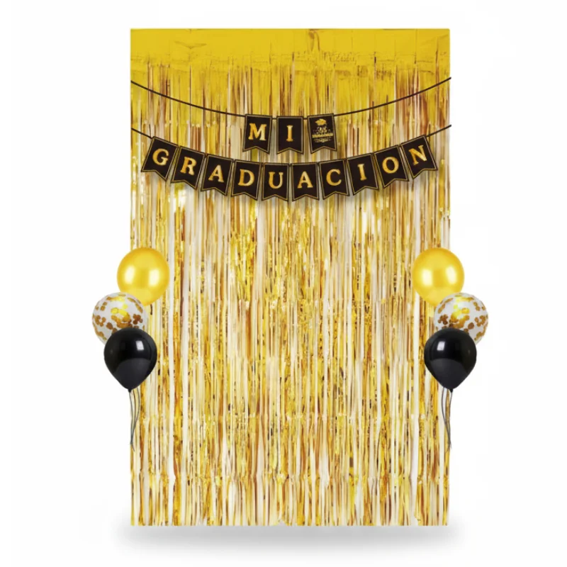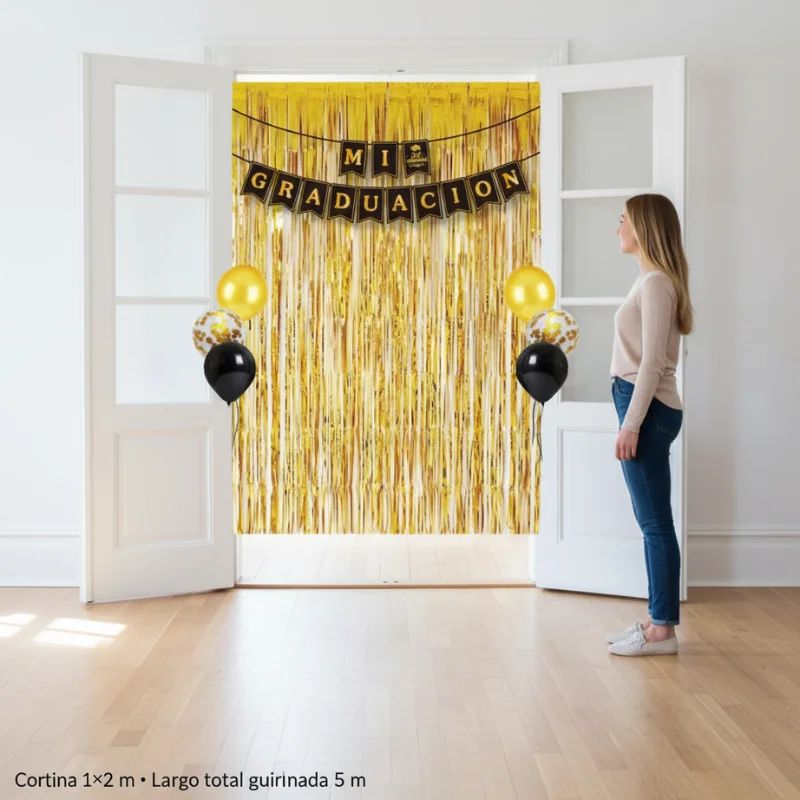 – 1 guirnalda de cartulina premium con la frase “Mi Graduación” (5 m): Añade personalidad y celebración al espacio.