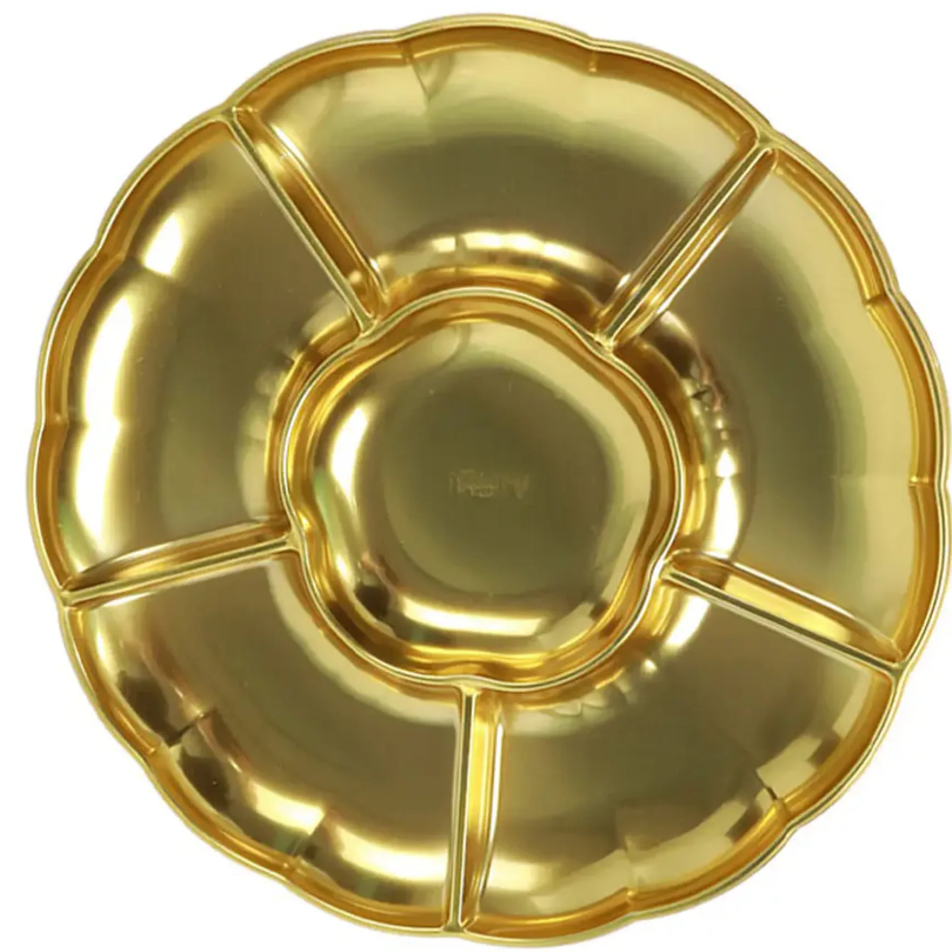 Set 3 Bandejas Redondas Metalizadas estilo flor - 30cm - Dorada, Plateado, Rosa Oro
